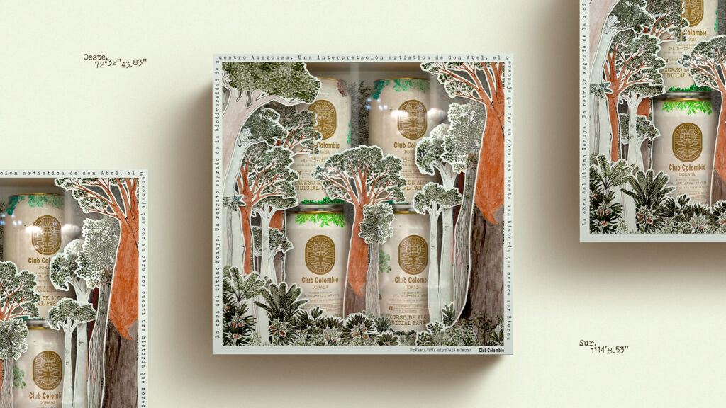 This is a Club Colombia Special Edition. Created to immortalize the life, artwork and legacy of one of our hidden artists, Don Abel Rodríguez, a self-taught artist from the Colombian Amazon who dedicated his life to preserve the Nonuya Culture by name and draw the most important biodiversity of the Amazon.